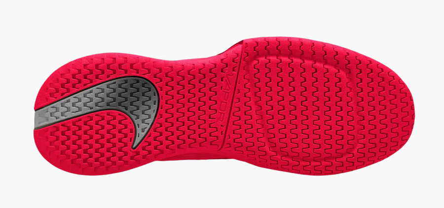 The outsole is made with our new rubber compound, which is lighter than previous Vapor versions. It provides grip and control for deceleration, firm footing, and resumption without compromising stability.
